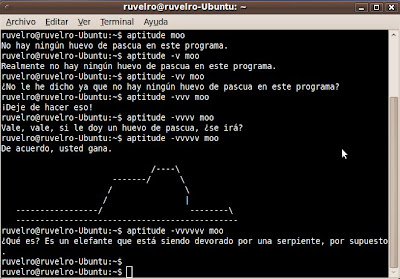 En el caso de Ubuntu, nos muestra una vaca si intentamos instalar una aplicación llamada moo