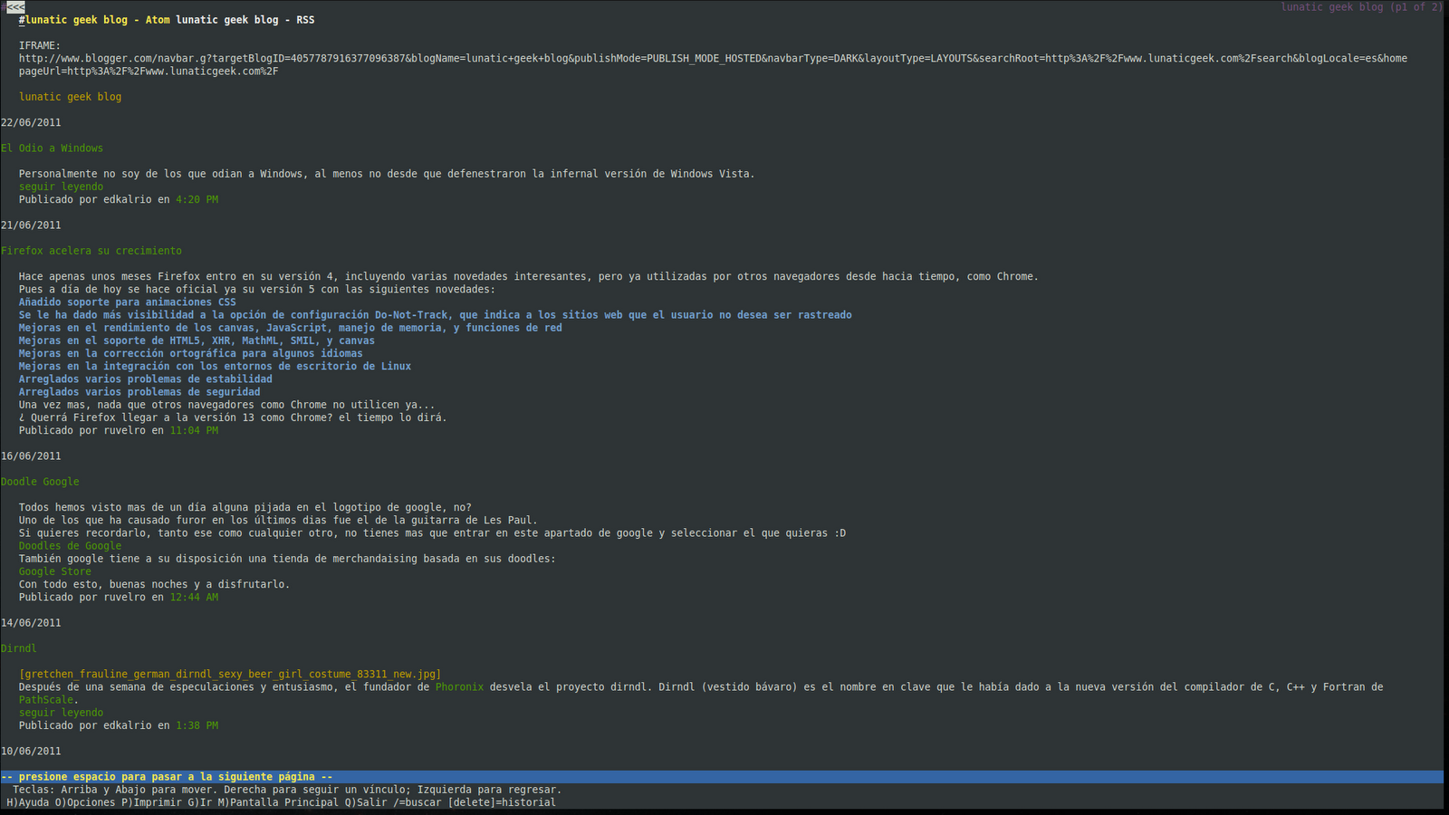 Por razones que no vienen a cuento he tenido que trabajar últimamente en entornos sin interfaz gráfica, es decir, en un terminal o emulador de terminal como lo llaman los puristas. No soy como esos cobardes windowseros que nunca han oído hablar de líneas de comandos o que evitan a toda costa cualquier programa para su cmd pero tampoco soy un talibán del terminal como Richard Stallman que odia los entornos con GUI porque los controladores de las gráficas son privativos. Me mantengo en el centro, donde radica la virtud. Me divierten los Shells pero obviamente, como cualquier vago que se precie prefiero los programas con gráficos.