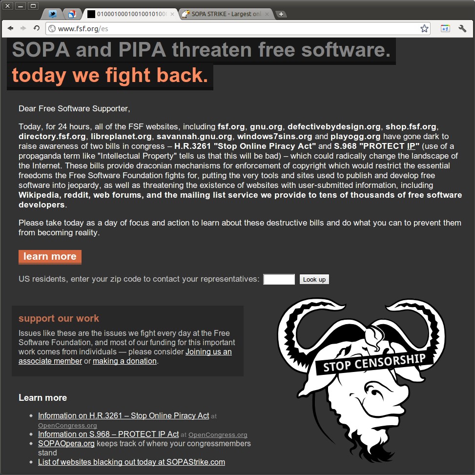Es increíble el apoyo de toda la web contra la propuesta de ley SOPA que solo traerá inseguridad y censura.