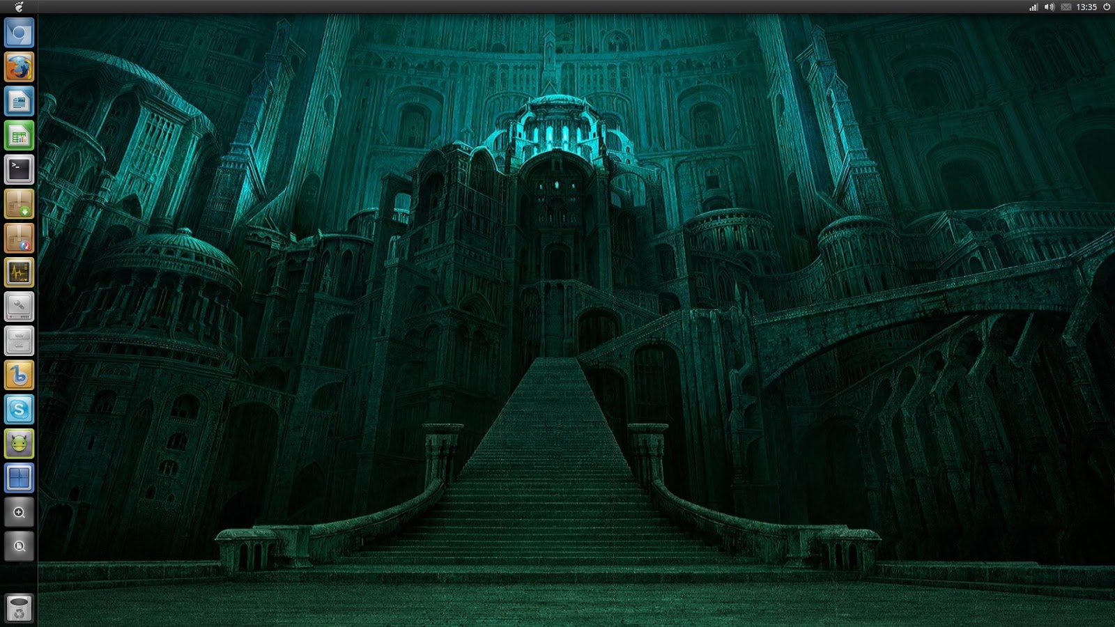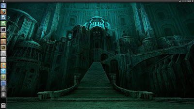 Creo que ya ha quedado claro que me gustan los fondos de escritorio sencillos, oscuros, fríos y apagados. Por aquel entonces reemplacé el Gnome Global Menu por Application Menu, el menú de Ubuntu Netbook Remix, cuyo diseño acabaría adoptando el menú de Unity.
